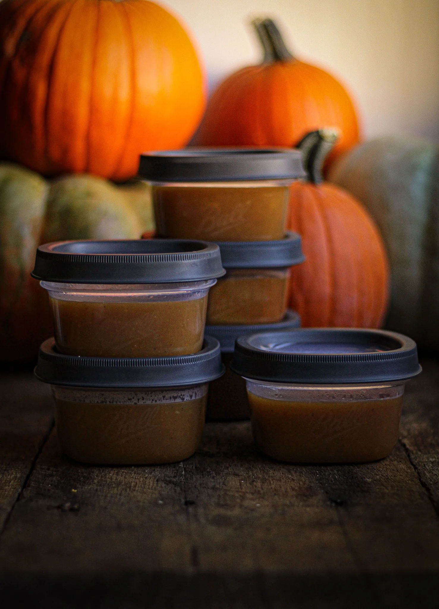 We celebrated National Canning Day this month by making freezer Pumpkin-Ginger Butter! It is delicious and oh so easy! This recipe is from the makers of Ball® home canning products. It has been playing on repeat in our house! We grew SO many pumpkins this year. One of my favorite ways to use them up is pumpkin butter! However, October is a VERY busy month for us. Having the option to freeze this recipe is a real time saver! You can use traditional glass jars (without a shoulder) or you can opt for these awesome freezer jars. They are even stackable!